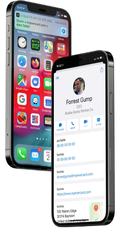 Profitez de la carte de visite connectée sans contact pour partager vos coordonnées en un geste avec MyEverCard® associée à la technologie sans contact (NFC) et au QRCode.